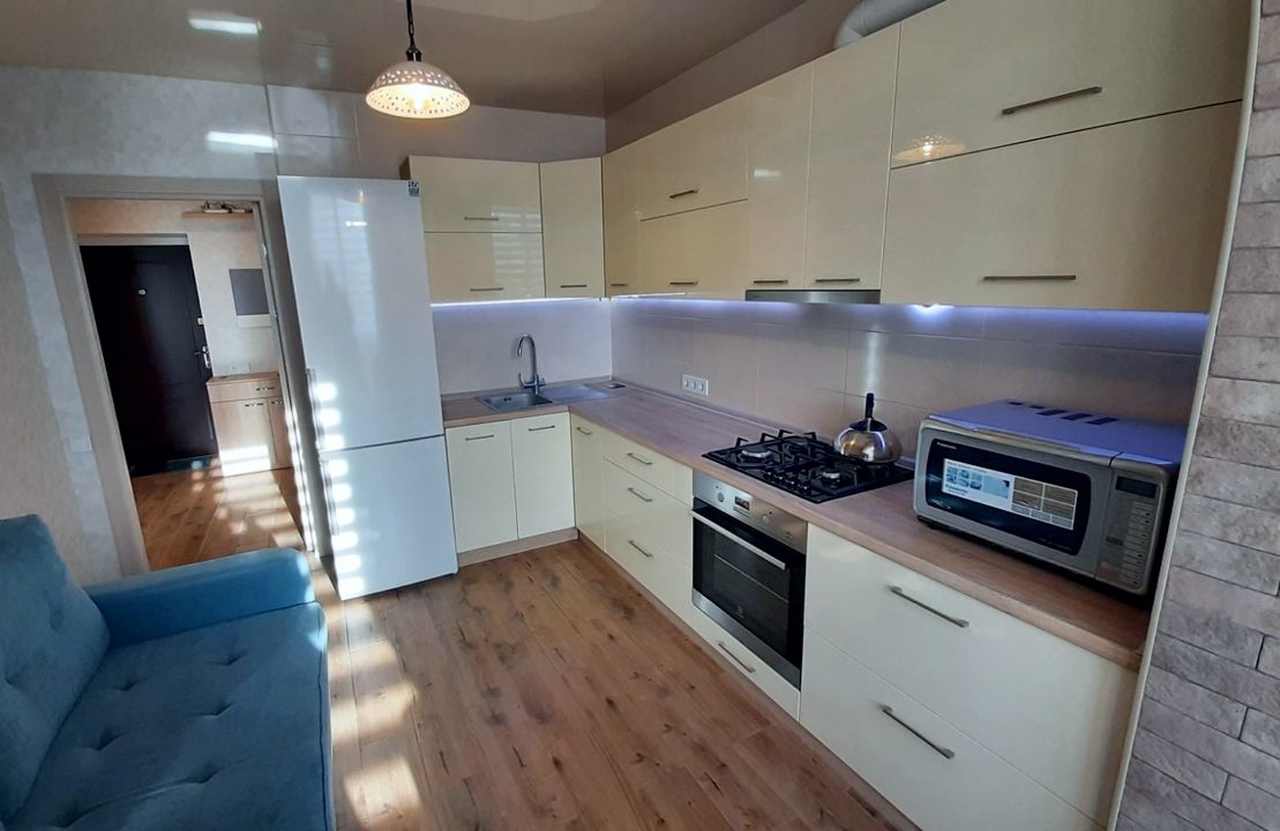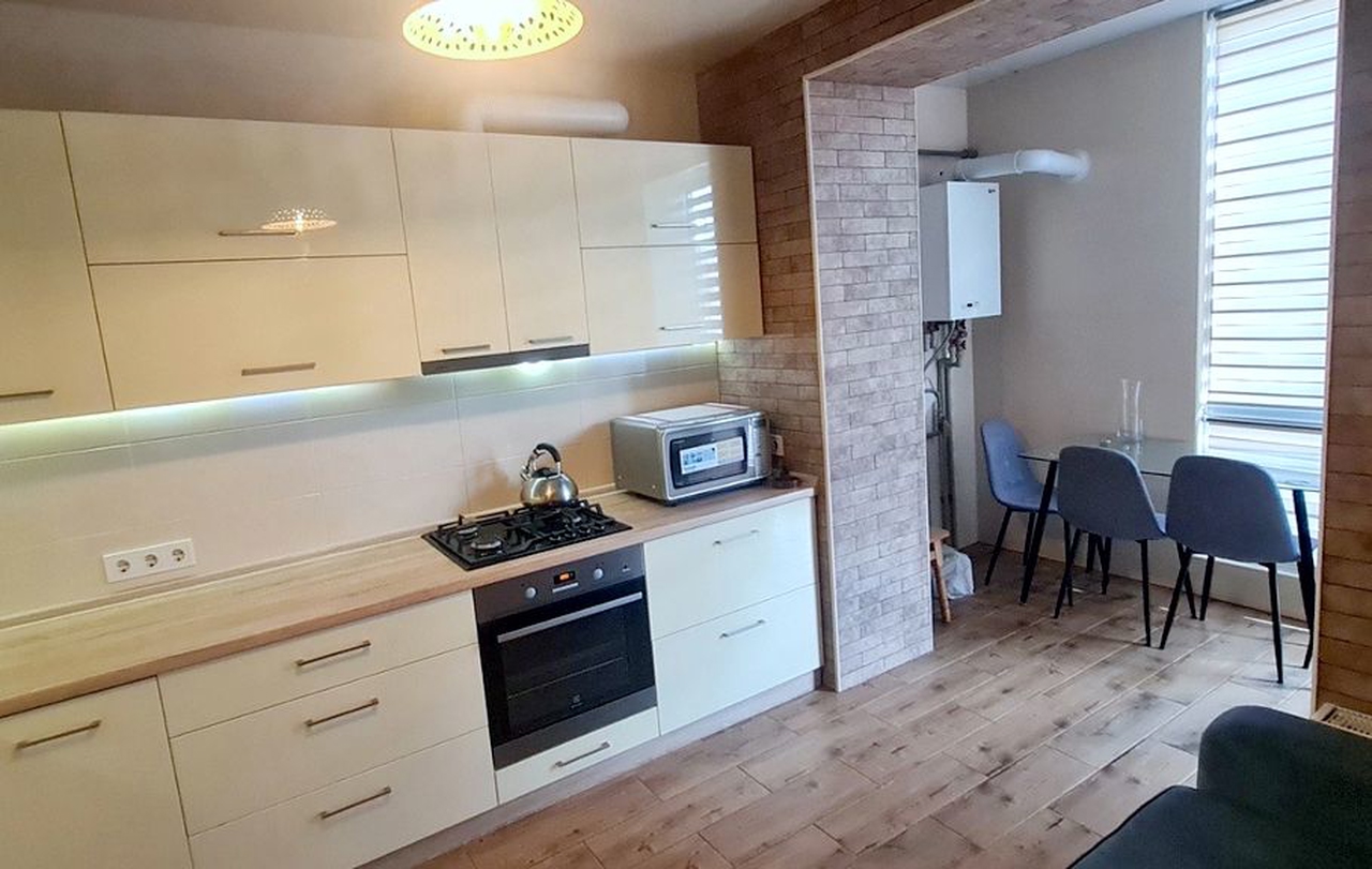Продам 1-к квартиру с ремонтом в ЖК Днепровская Брама-1. Площадь 48м2, просторная кухня - студия и отдельная комната, 2 панорамных балкона! Удобный 4/12 этаж. Состояние отличное! Индивидуальное газовое отопление, шумоизоляция, теплый пол. Квартира полностью укомплектована мебелью и техникой - заходи и живи! Закрытый двор, с охраной и камерами. Детские и спортивные площадки, футбольное (баскетбольное) поле, тренажеры, беседки. Рядом паркинг, детский сад, школа, бассейн, супермаркеты (АТБ, Dmart), парк, остановки транспорта