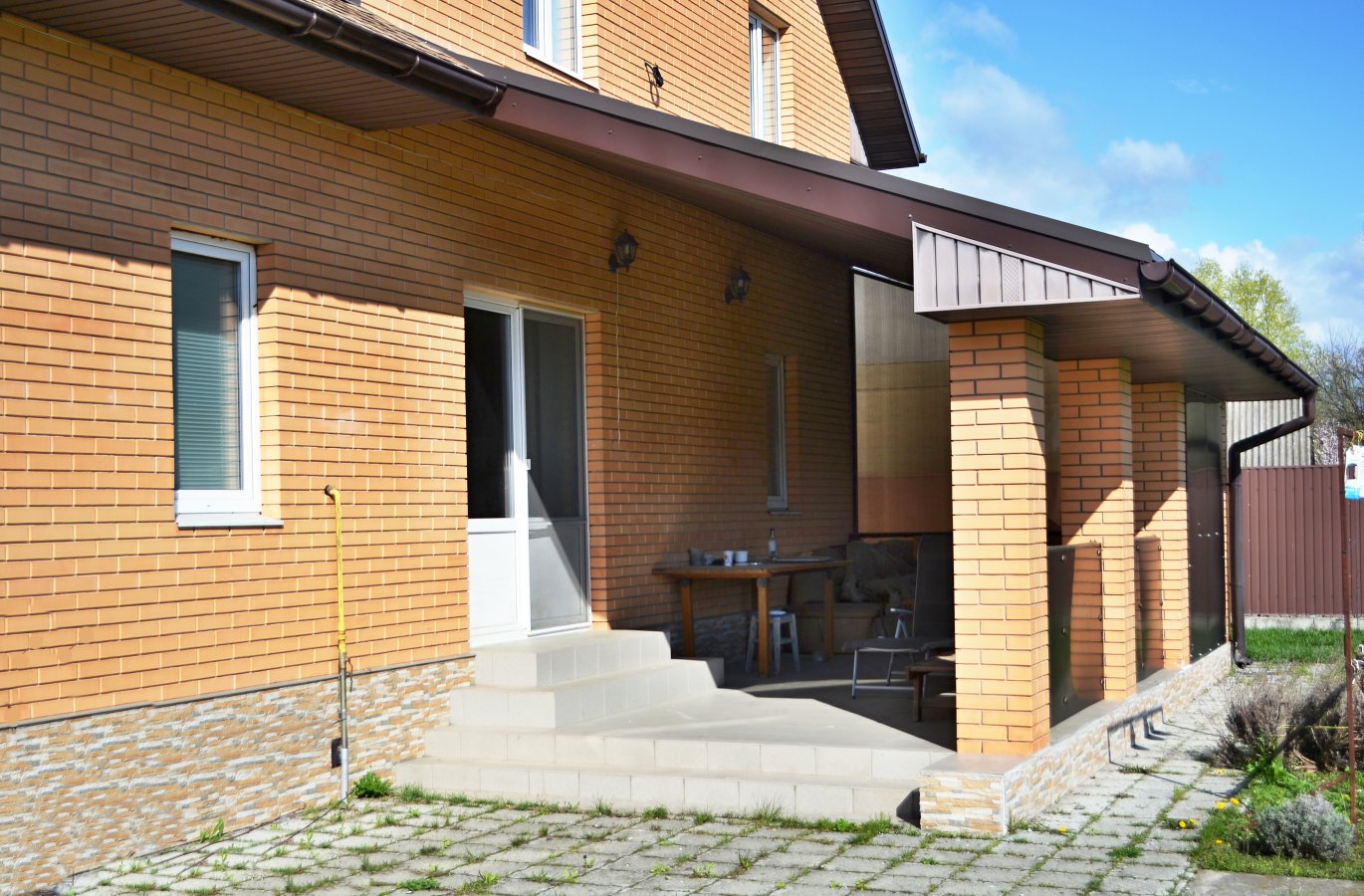 Продається капітальний житловий будинок в охайному, доглянутому стані: заходь - живи. Рік побудови - 2014. Розташування: Київська область, Бориспільський район, село Дударків (район зрубів). Відстань від воріт до ст. метро "Бориспільська" - 22 км, до ст. метро "Лісова" - 26 км. Під'їзд асфальтований. Загальна площа 216,8 кв.м., житлова - 111,6 кв.м., кухня - 12,4 кв.м., відкрита тераса 22 кв.м. В будинку чотири житлові кімнати (спальні), вітальня, два с/вузли з душовими кабінами, котельна, пральна, підвал, гараж на два авто (автоматичні ворота), погріб. Трифазне електропостачання з окремими стабілізаторами (на кожну фазу). Встановлено бензиновий генератор потужністю 6,5 кВт з автоматичним вмиканням у разі зникнення напруги в мережі. Газовий (з джерелом безперебійного живлення) та електричний опалювальні котли, бойлер для підігріву води. Водопостачання - особиста свердловина глибиною 60 метрів з фільтраційною системою очищення води. Чотири накопичувальні ємності (септики): для фекальної води (з вентиляцією) та відведення дощової (талої) води. Відеонагляд, домофон, сигналізація, провідний Інтернет. Площа земельної ділянки 22 сотки. Цільове призначення: будівництво та обслуговування житлового будинку. На території: літня кухня з барбекю, господарче приміщення, погріб, теплиця з полікарбонату, літній душ з вбиральнею, вольєр площею 13 кв.м., садок, газон з автоматичним поливом, город площею 7 соток. У садку: яблуні літніх та осінніх сортів, сливи, персики, вишні, черешня, айва, груша, смородина, виноград. По периметру ділянки паркан з профільного листа (фасадна частина на фундаменті з каменю). Автоматичні розсувні ворота. Будинок не перепродавався. Первісний документ - Свідоцтво про право власності. Поштова адреса, реєстрація місця проживання. Продаж за ціною власника, без комісійних посереднику.