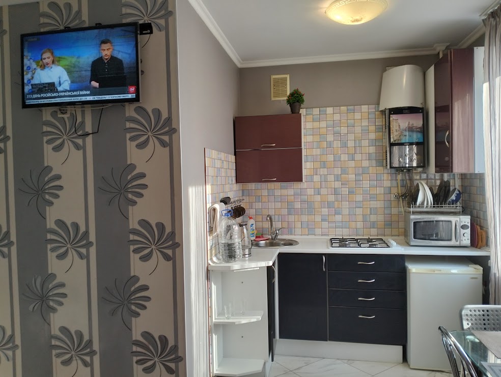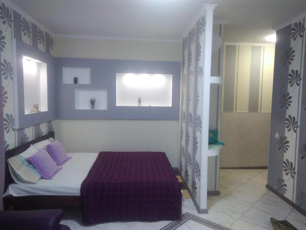 Уютная , эксклюзивная однокомнатная студио VIP в центре . Посуточно Квартира теплая, просторная, в старом кирпичном доме с высокими потолками. Новый современный ремонт , роскошный дизайн в интерьере подарит вам приятное ощущение комфорта. Вся мебель и все детали интерьера выполнены из самых последних материалов в мире ремонта высокого качества. Удобная кухня со встроенной мебелью , новой, хорошей посудой и холодильником. Совмещенный санузел , яркий и удобный . Есть балкон. В наличии вся необходимая бытовая техника, телевизор (плазма), гладильная доска, утюг, стиральная машинка. Интернет Wi-Fi. Спальные места - двуспальная кровать и раскладной кожаный двуспальный диван. В квартире есть кондиционер, круглосуточная подача горячей воды ( колонка-автомат). Прямо за домом охраняемая автостоянка, во дворе удобная парковка, Поселение в любое время суток Командировочным полный пакет документов 0958189707и 0730215184 0689077158 450гр в сутки